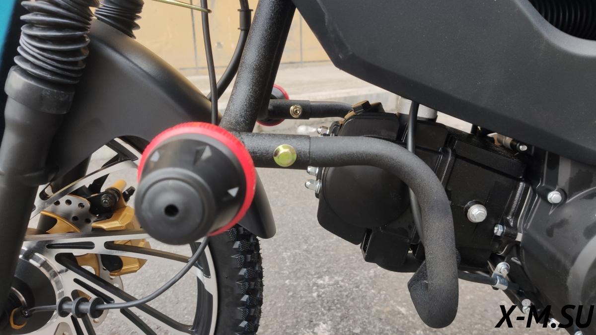 Рама мопеда выполнена из прочного и легкого сплава CR-MO (хромолибден) с пространственной технологией конструкции и толщиной 2.5 мм, обеспечивающей жесткость опоры. Мопед может использоваться с высокой нагрузкой на дальние расстояния по различным видам дорог. Благодаря высокому клиренсу и крупному протектору резины, мопед справляется даже с бездорожьем.. Рама создана при помощи технологии строения пространственной рамы Благодаря современным технологиям 3D моделирования рама получилась не только легкой но и крепкой, позволяющей нагружать мопед до 250кг полезного груза. Что значительно превосходит значения конкурентов.